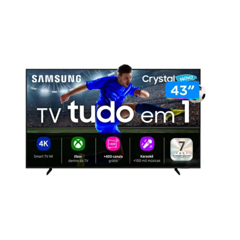 A Smart TV Samsung Crystal UHD UN43U8600FGXZD que redefine sua experiência visual com resolução 4K UHD (3840×2160). Equipada com o processador Crystal 4K, ela otimiza cada cena para cores vibrantes e detalhes nítidos. A tela de 43″ e a taxa de atualização de 60Hz entregam fluidez para filmes e séries. Com o sistema operacional Tizen, navegar entre seus apps favoritos é rápido e intuitivo. Conta com a Assistente Virtual Bixby, sendo também compatível com Alexa, facilitando o controle por voz. Conecte seus dispositivos com 3 HDMI e 1 USB-A. O controle remoto TM2360E Solarcell não necessita de pilhas.